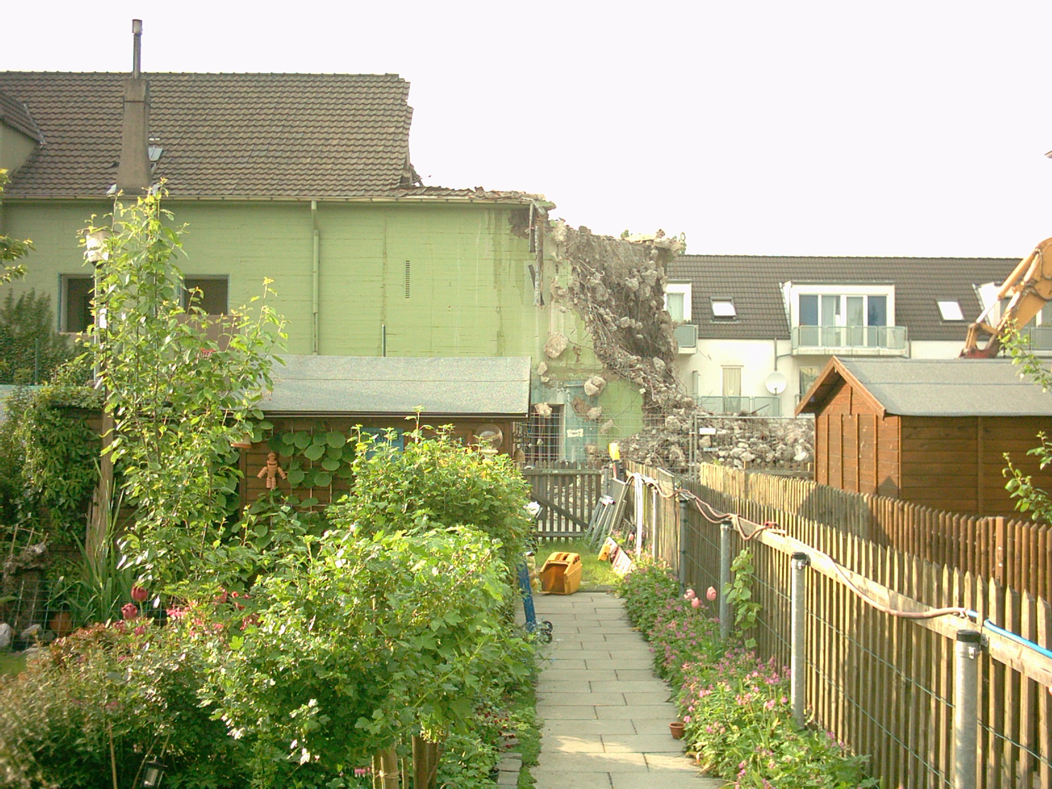 stoppte Bunker-Abriss Der Abbruch des Bunkers in der Siedlung Heidehöhe entpuppt sich für die WGL zunehmend als harte Nuss. Jetzt wird vielleicht doch noch gesprengt. „Schön ruhig heute“, freut sich Klaus Drüke. Dessen Haus steht keinen Steinwurf von der Schutthalde aus zermeißeltem Bunkerbeton und verbogenem Baustahl entfernt. Sechs Tage lang hatte sich im Auftrag der Wohnungsgesellschaft Leverkusen (WGL) ein riesiger Bagger mit einem beindicken Stahlmeißel an dem Bunker aus dem letzten Vorkriegsjahr 1938 zu schaffen gemacht und die Anwohner schier zur Verzweiflung gebracht. Ungefähr ein Drittel des 51 Meter langen und 11,50 Meter breiten Schutzraums hatte der Baggerfahrer in den letzten Tagen zerkleinern können, einmal zerbrach sogar der Meißel, jetzt stoppte das Umweltamt den lautstarken Abriss. Die Interessengemeinschaft Siedlung Heidehöhe hatte sich mit einem Brief an die Leverkusener Bauaufsicht gewandt, schon kurz nachdem die ersten Schläge getan waren, wie deren Sprecher Dirk Strauch sagte. „Wir haben die Sicherung der Baustelle beanstandet, sogar Kinder sind in den Trümmern herumgeklettert“, so Strauch. Außerdem habe man die Frage nach der Zulässigkeit der ohrenbetäubenden Meißelei gestellt und die Bauaufsicht gebeten, auf die Baustelle Acht zu geben. Die Folge: Das von Bauaufsicht und WGL zugleich informierte staatliche Umweltamt maß mit 96 Dezibel am Haus von Klaus Drüke zwar noch keinen Diskothekenwert. Immerhin sei der Wert aber so hoch gewesen, dass das Umweltamt der Wohnungsgesellschaft nahe gelegt habe, einer amtlichen Anordnung zuvor zu kommen und die Baustelle lieber selbst still zu legen. Das sagte Stefan Altenbach, technischer Prokurist der WGL, auf Anfrage. Seit Montag früh ist nun also erst einmal Ruhe in der Heidehöhe. Wie es weitergeht? Jedenfalls nicht ohne Lärm, so Altenbach. Die Abbruchfirma prüfe zwar auch Preis und Verfügbarkeit einer Hydraulikzange, die es nach deren Aussage in der benötigten Übergröße aber nur zweimal in Europa gebe. Als wahrscheinlichere Methode für den Abriss, und das sagte Altenbach eher zögerlich, sehe er aber mehrere so genannte kleine „Lockerungssprengungen“. Damit würde zwar nicht alle, aber ein Großteil der Meißelarbeiten überflüssig. Nur, alleine schon das Wort Sprengung rufe ein gewisses Unbehagen bei der Bevölkerung hervor. Altenbach: „Das müssen wir mit den Anwohnern besprechen.“ |